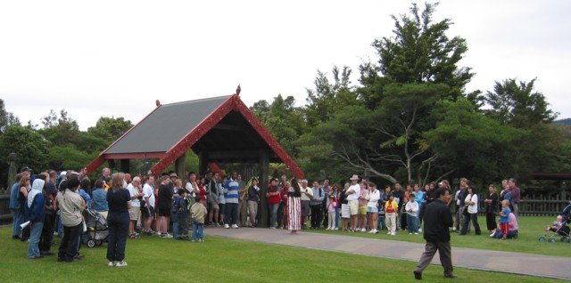 وهذه الصورة تبين زيارة هيلين كلارك رئيسة الوزراء السابقة للمسلمين في هميلتون